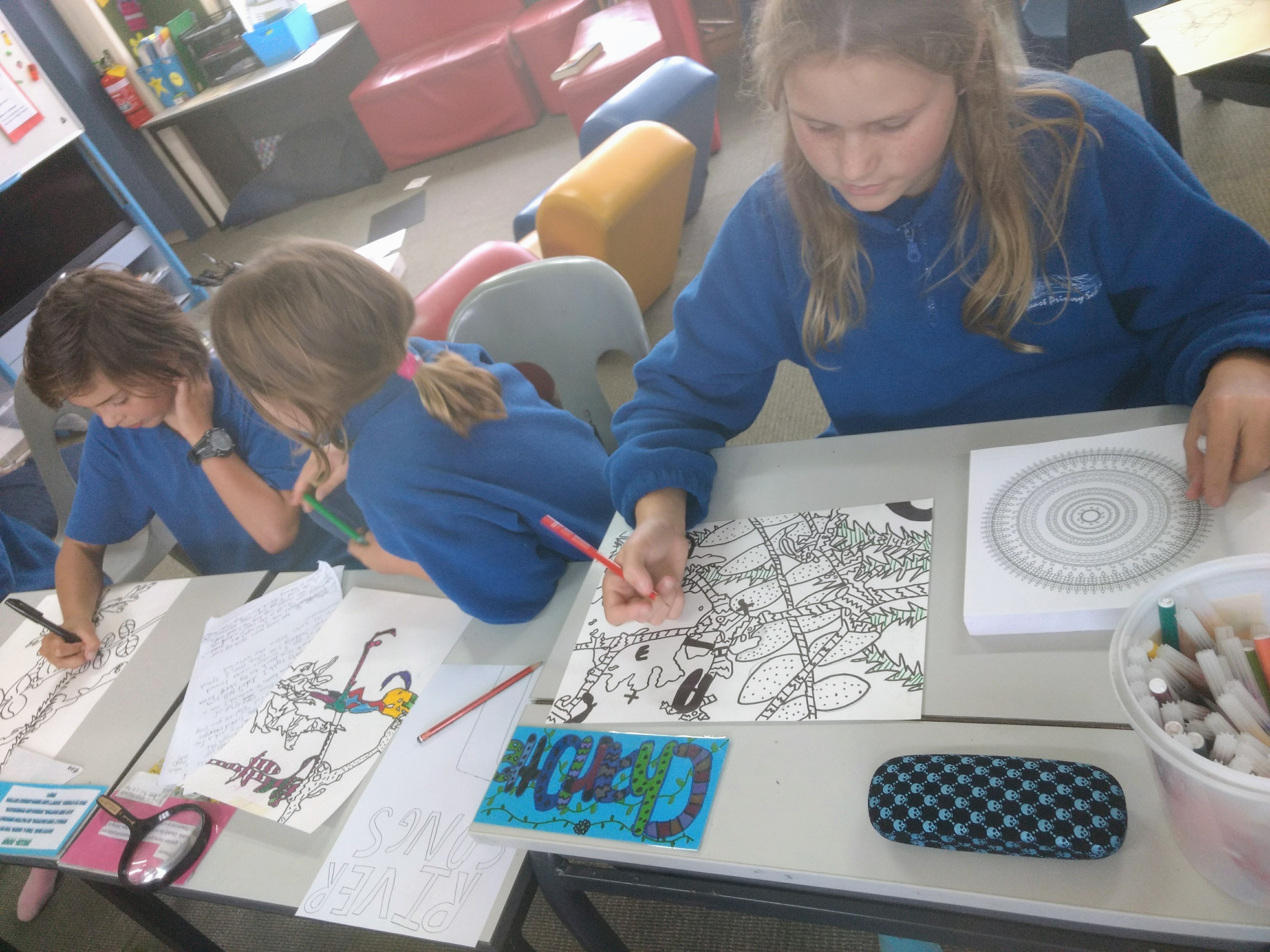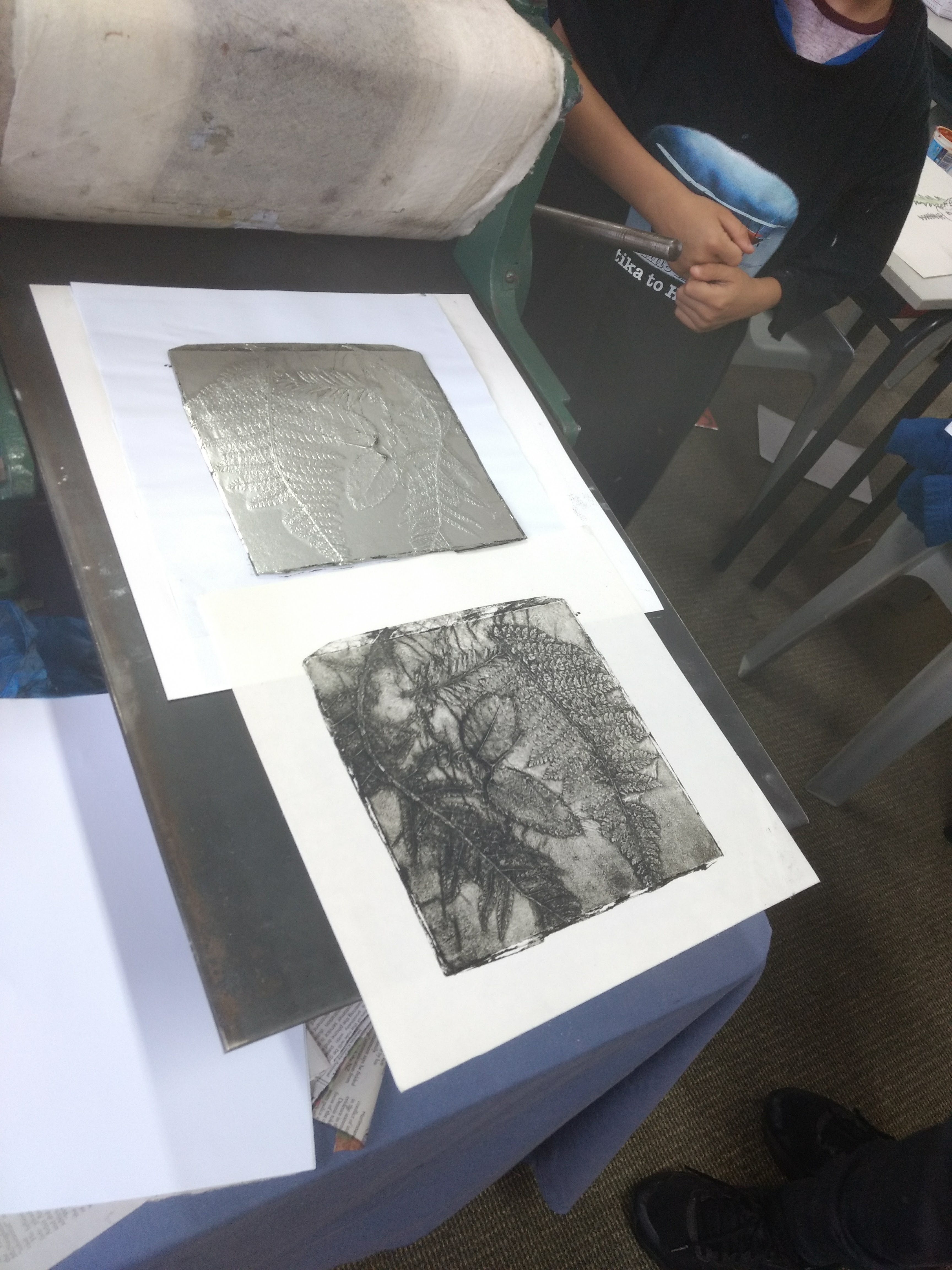 This year we worked with South Westland schools at Gillespie’s Beach and Jackson Bay. Our focus was on plant ID. After an outdoor session, I did a follow-up art session at school- this gave us the opportunity to revisit learning and to develop it- using the visual arts. At Fox school, we focused on plant ID, patterns and learning about painting with acrylics. In Haast and Fox Glacier schools we worked on plant ID and then collagraphs.